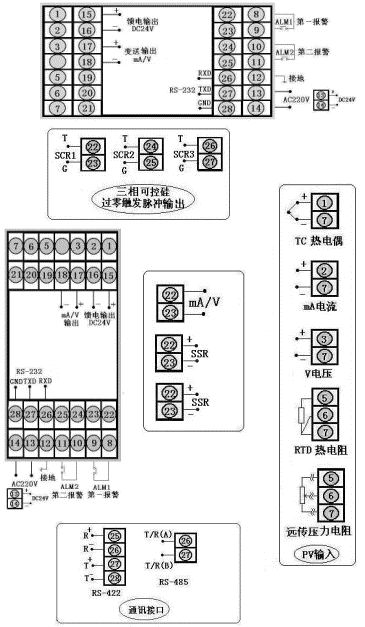 PWM输出,可控硅触发输出,固态继电器输出,电压/电流输出 |