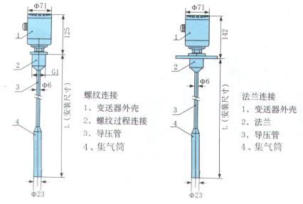 | 导压式静压液位变送器有G1螺纹及法兰两种标准的安装方式 |